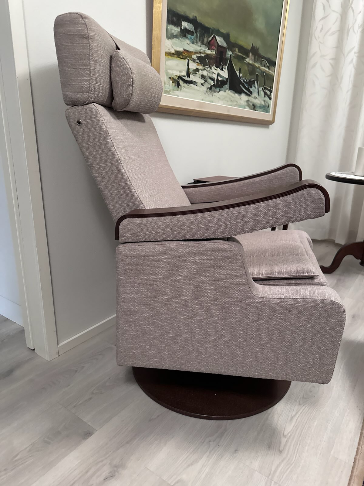 Lehtiä lukiessani olin seurannut Armi Aktiivituolin ilmoituksia. Vuonna, 2019 näin Katso -lehdessä Armi Aktiivituolin uuden ilmoituksen, josta huomasin, että no nyt sitä saa pyörivällä jalalla. Silloin kaikki loksahti kohdalleen.